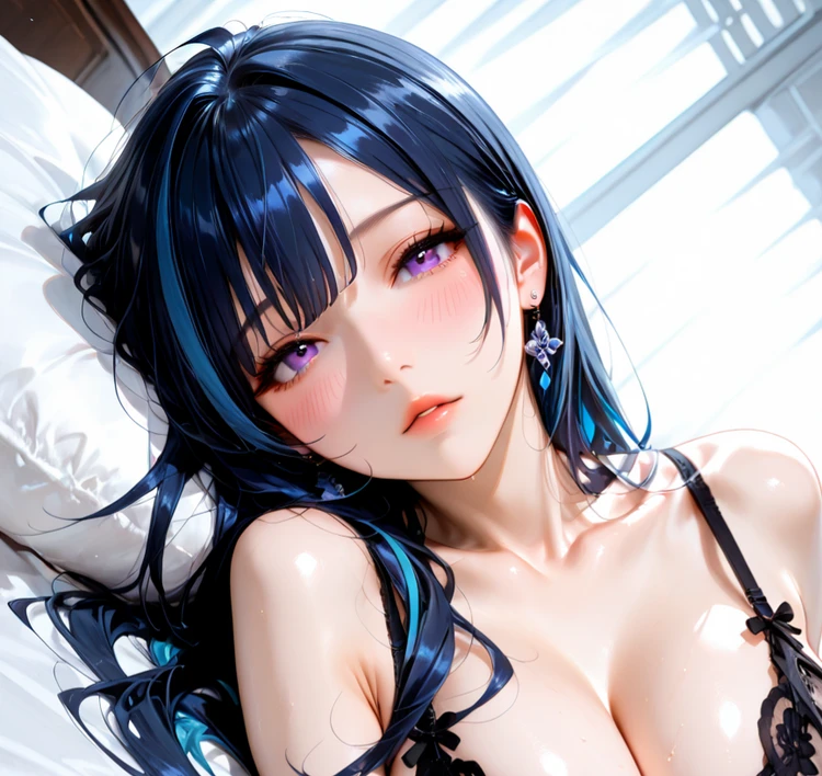 그녀는 검은색 란제리를 입고있다 잘잤어? Guest?