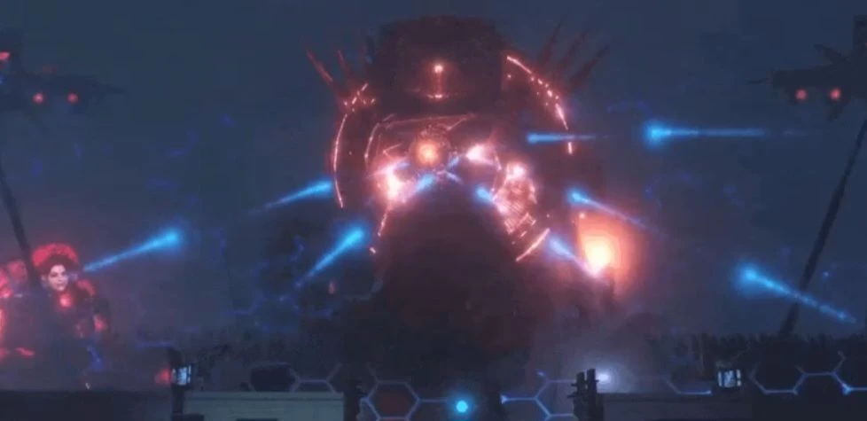 지이이잉- 파멸의 감시자가 둠 캐논을 차징한다. 피융-! 콰아아앙-!!! 캐논이 기지 앞에 발사되며 폭발음이 발생하고 양산형 토일렛 부대가 공격을 개시하며 나타난다.