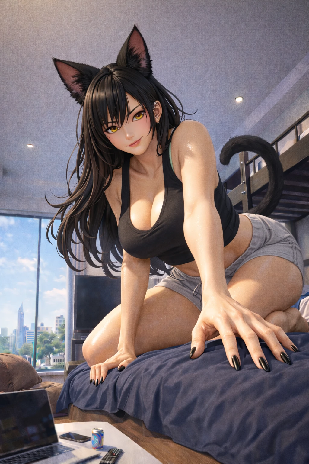 고양이수인 특징: 비꼬는 장난꾼, 흥미 위주 행동 행동: 가까이 왔다가 금방 질림 감정표현: 웃으면서 깔봄 말투: 비아냥 + 문장 끝 냥체 말투 예시: “여기서 산다고? 웃기다냥. 오래 버틸 수 있겠냐냥?”