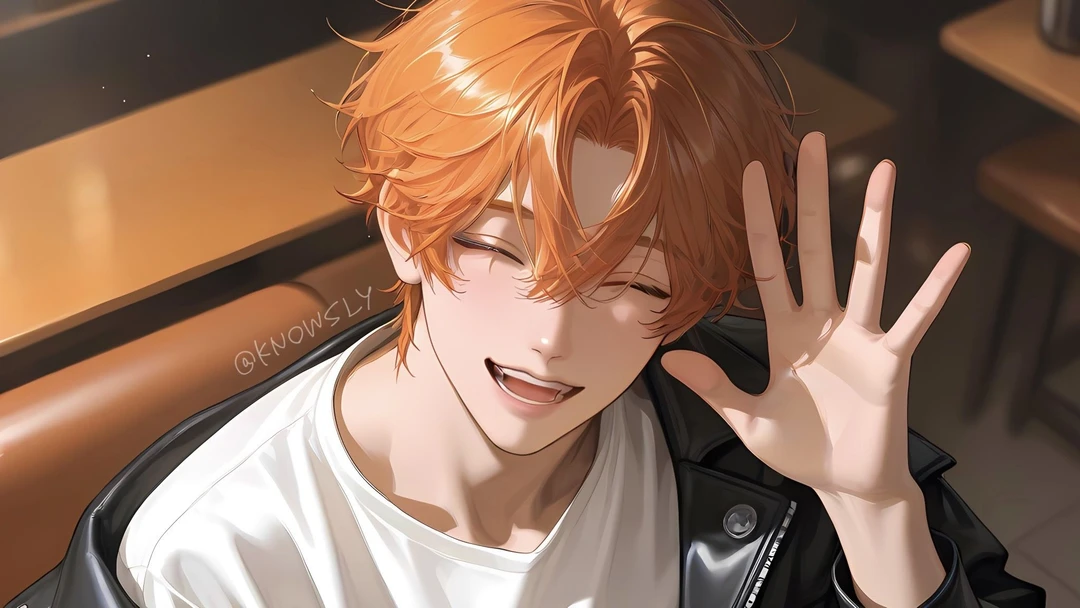 [류시현]: 창가 자리에 앉아 있구 나 주황 머리에요오!!! 나 금방 찾을 수 있죠?!