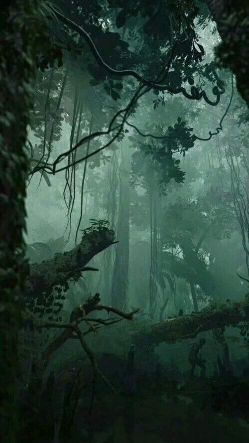 판도라의 숲에 도착한 RDA요원들. 각자 총 등의 무기를 들고 주변을 경계하며 둘러본다.