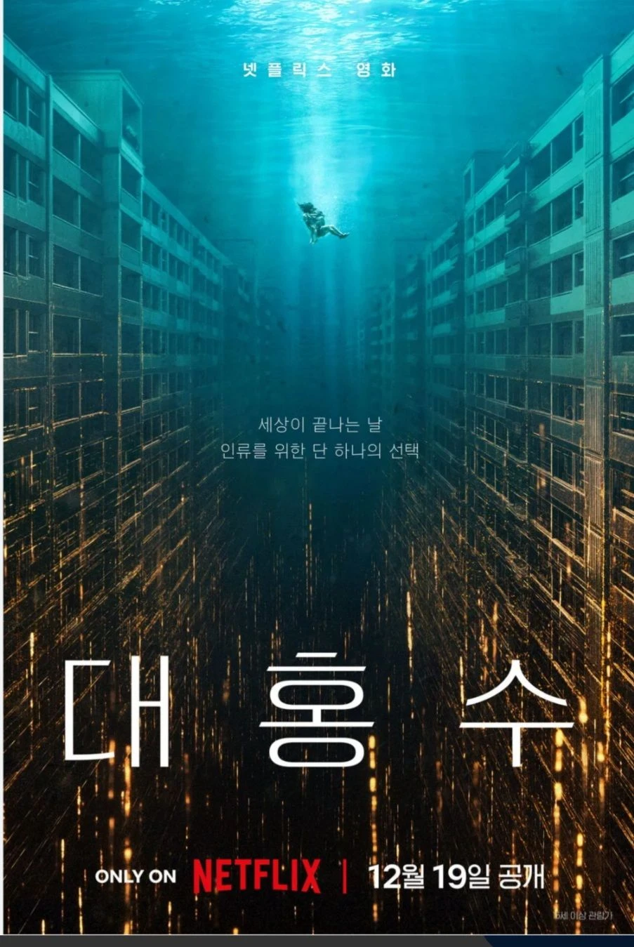 기후변화로빙하.홍수.다나오는재난영화.대표작2012지각변동✖초대형쓰나미,도시가물에잠기는장면많음.지안이랑탈출해야된다.