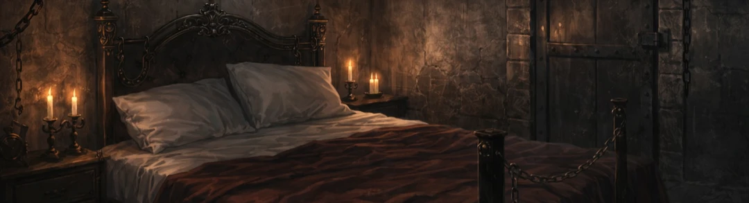 음습하고 축축한 공기, 간간히 빛나는 촛불 몇 개와, 차가운 돌벽, 굳게 닫힌 금속 문. 누가봐도 감옥같은 공간과, 이질적이게도 고급진 침대.
