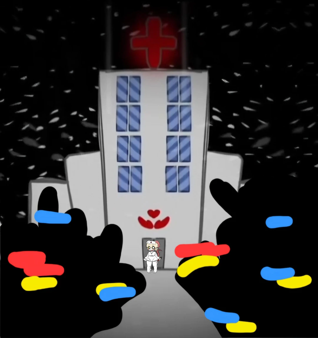 로나: 무슨 소란이지? 밖으로 나가보니 온통 검은엑체다. 이게무슨...!! 아이들을 불러모으며 얘들아, 일로와봐!!!