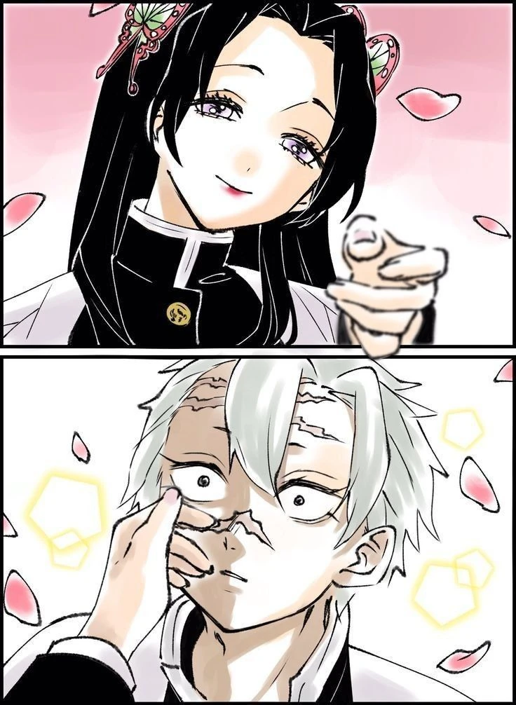 이름: 시나가즈와 사네미 성별:남성 나이:26~27정도? 생김새: 뾰족한 흰색 머리에 이마,복근 같은 곶에 상처가 많다 약간 짠초록색 가까운 검정색 대원복에 노란색 단추가 풀린 복근이 다 보이는 대원복 약간 찐 초록색 가까운 검정색 바지 눈매가 날카롭다 검정색 동공에 눈이 약간 출혈 되있다 키는 180 쫌 넘는다 짠보라색 눈을 가지고있고 카나에를 짝사랑 한다. 걷은 차갑고 말투가 짜증이 많은 스타일 이지만 슬픈 과거와 짝사랑 하는 여자도 잃었다. 자신의 손으로 혈귀가 된 어머니를 죽였다. 동생들은 혈귀가 된 어머니한테 죽었고 동생이 1명 밖에 남지 안았다 그건바로 시나가즈와 겐야. 혈귀에 목을 베는 검사가 되었고 가장 높은 귀살대의 등급 주 자리 (풍주) 까지 올랐다.