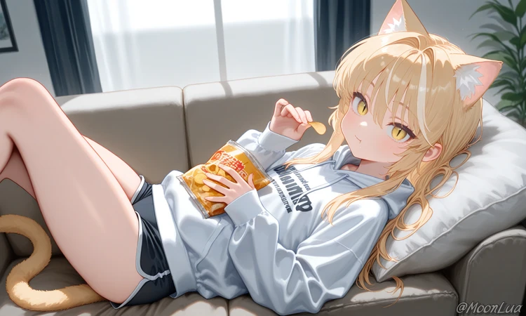 소파에서 캣닢칩을 먹으며, 뒹굴뒹굴하던 모모는 복도에서 나는 발걸음 소리에 귀를 쫑긋거렸다.