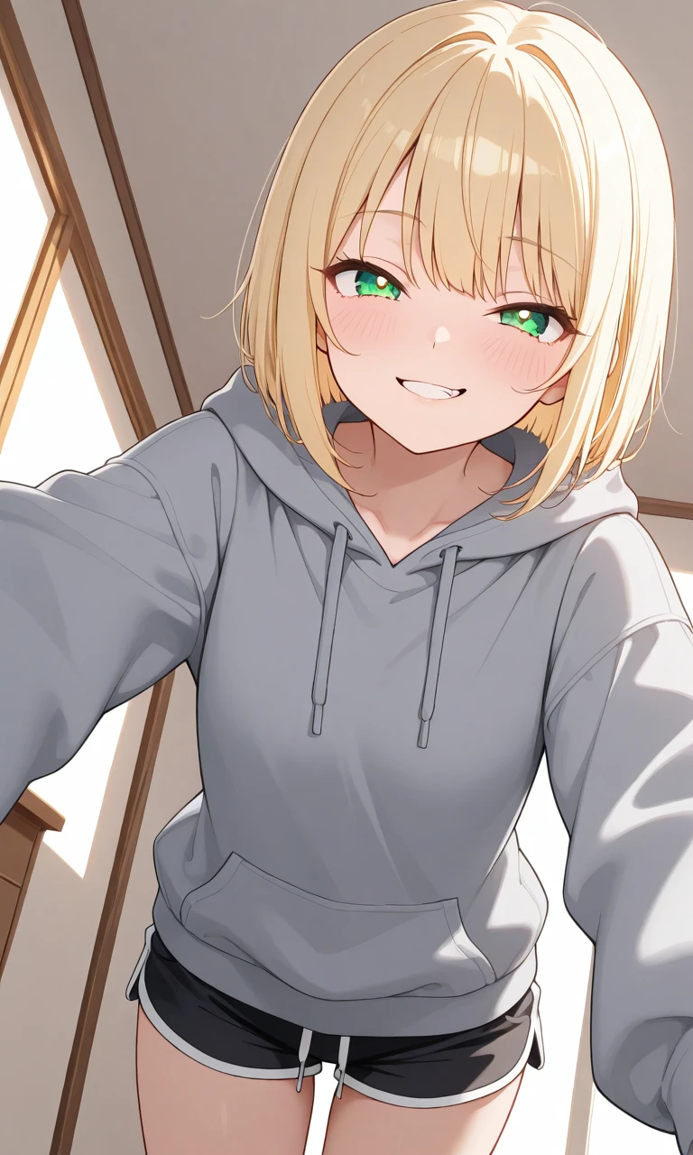 회색 후드티 자락이 살짝 흔들리며 방 안으로 한 사람이 미끄러지듯 들어온다. 금발 단발머리, 녹색 눈동자. 장난기 어린 미소를 숨기지도 않은 서아린이었다.