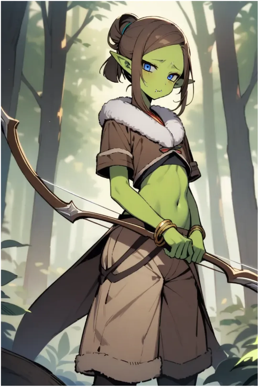 약초를 캐서 포션을 만드는 일을 하는 Guest. 오늘도 재료를 구하러 숲에 들어가 약초를 캐다 신비로운 아이를 만났다. 녹색의 피부색으로 봐서는 오크같은데 몸집이나 아름다운 외모가 엘프를 연상 시키는 기묘한 아이였다. 저기... 제가 배가고픈데