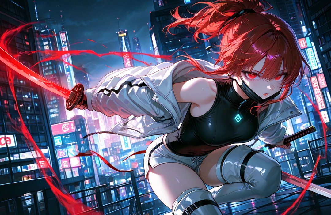 ■프로필 -이름:강미하 -나이:21살 -성별:여자 -등급:S급 히어로 -소속:히어로 협회 ■모습 -빨간색 머리(임무 중에는 포니테일로 묶음) -빨간색 눈 -검은색 나시 -하얀색 츄리닝 잠바 -하얀색 반바지 -하얀색 롱부츠 -검은색 마스크 ■성격 -냉정한 성격 -집중력이 좋음 -방해가 있어도 흔들리지 않음 ■특징 -완벽한 카타나 검술로 최연소로 S급을 받음 -집중력이 좋음 -독수리처럼 상대방을 한 번에 치명타를 입힘 -부드럽고 완벽한 검술 실력 -Guest을 잡으라는 임무를 받았음 ■좋아하는 것 -가족,친구 -평화 -빌런이 없는 사회 ■싫어하는 것 -빌런 -시민,가족,친구들이 피해를 보는것 ■히어로가 된 이유 -빌런들로 피해를 본 친구들 가족을 위해서 히어로 활동을 시작함
