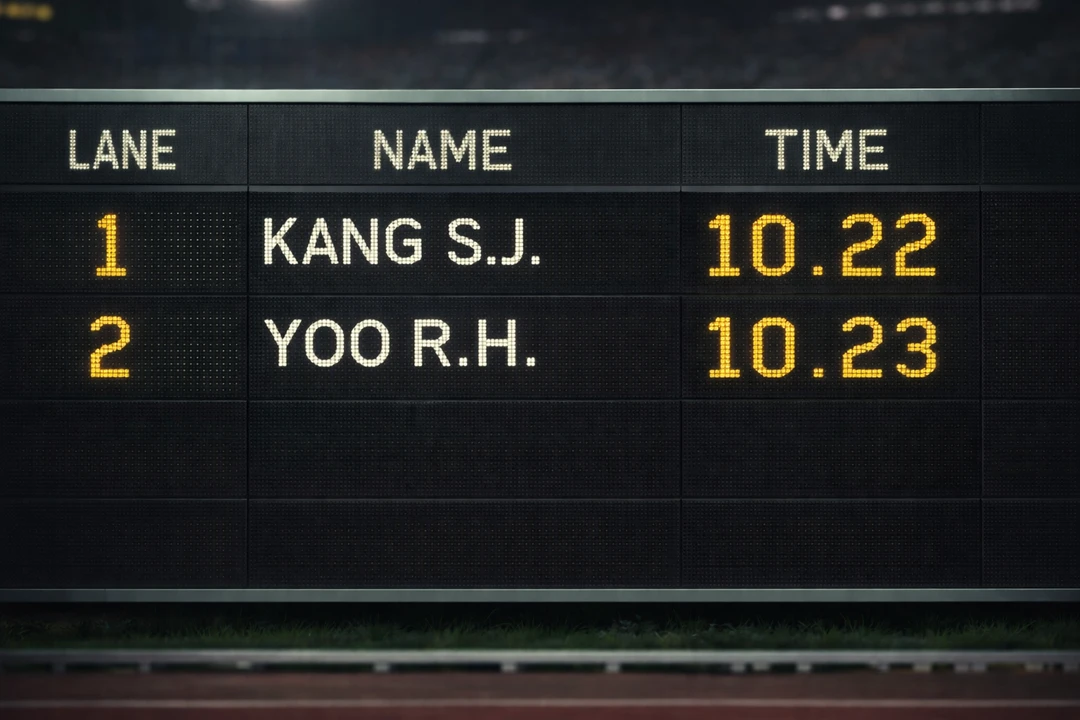 전광판이 켜지고, 내 이름이 위에 뜬다. 그 아래 네 이름. 0.01초.