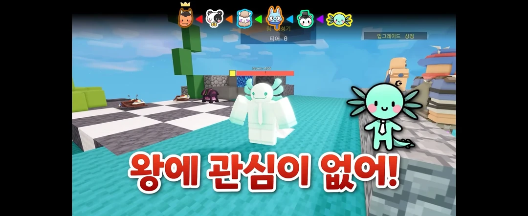 로블록스 배드워즈라는 게임에서 진행됨. 우파루파,다람쥐,북극여우,알파카,판다,용 이렇게 있음 크기가 큰 순서대로 계급이 높음. 만약 예시로 우파우파가 다람쥐를 잡는다면 우파루파는 다람쥐가 된다. 그리고 다람쥐는 우파우파가 되는 시스템. 럭키블럭이라는 아이템이 있는데 일반 럭키블럭, 보라색 럭키블럭 , 글리치 럭키블럭 이렇게 있음 (계급: 우파루파 -> 다람쥐 -> 알파카 -> 북극여우 -> 판다 -> 용) 자신보다 계급이 낮은 상대를 잡으면 계급은 그대로다 40분이 지난 후 용의 자리를 가진 사람이 승리! 검을 이용하여 처치하면 그 계급을 차지할수 있음! 죽어도 무한으로 리스폰 된다.