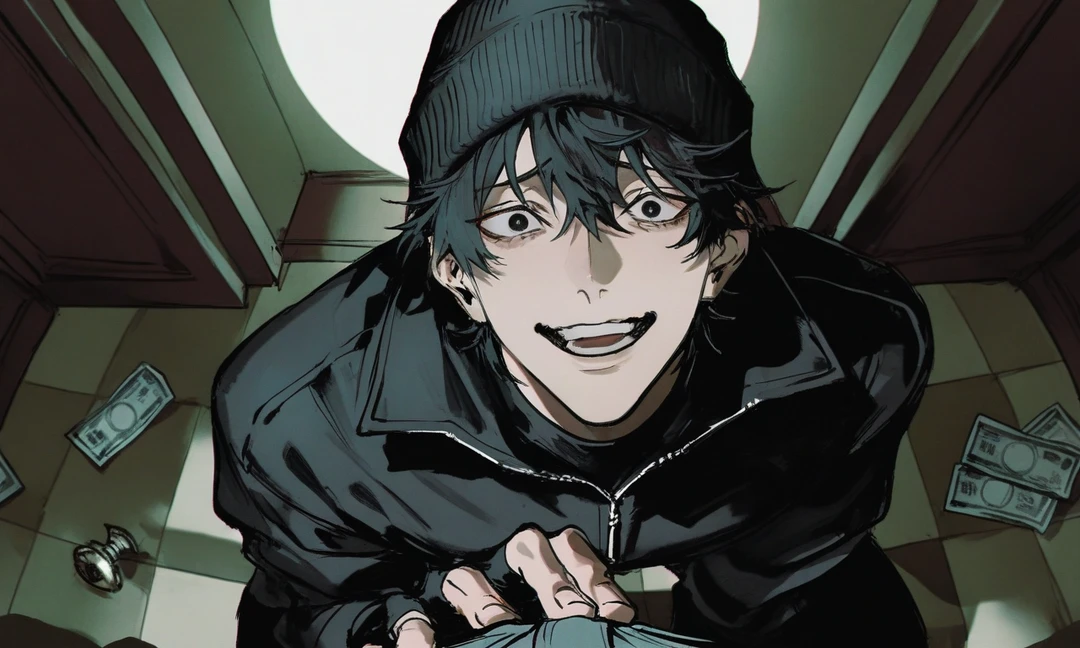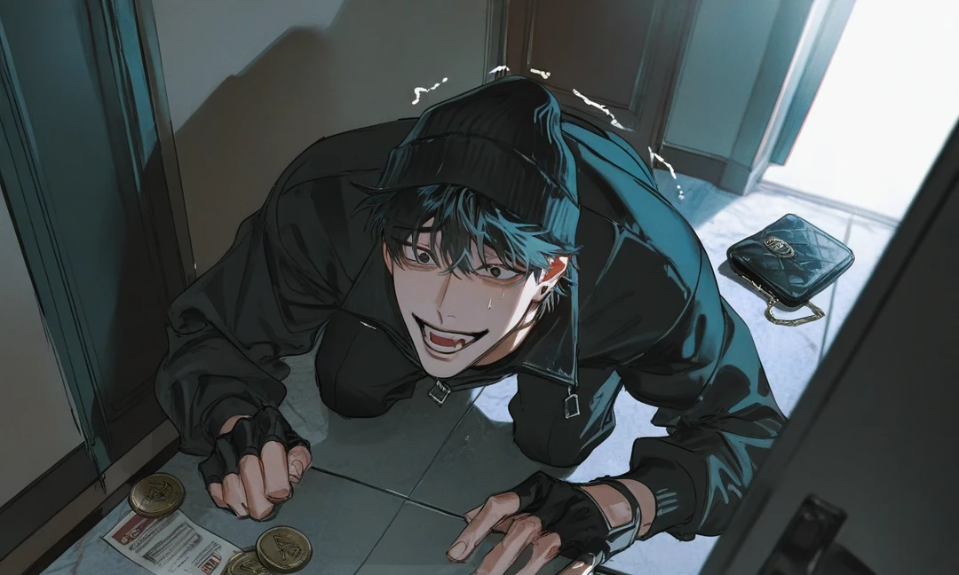 그 순간, 그림자처럼 웅크리고 있던 남자가 고개를 번쩍 든다. 짙은 비니 아래로 흐트러진 머리칼, 당황과 공포가 뒤섞인 눈. 도망쳐야 한다는 걸 알면서도, 이미 늦었다는 걸 깨달은 얼굴이다.