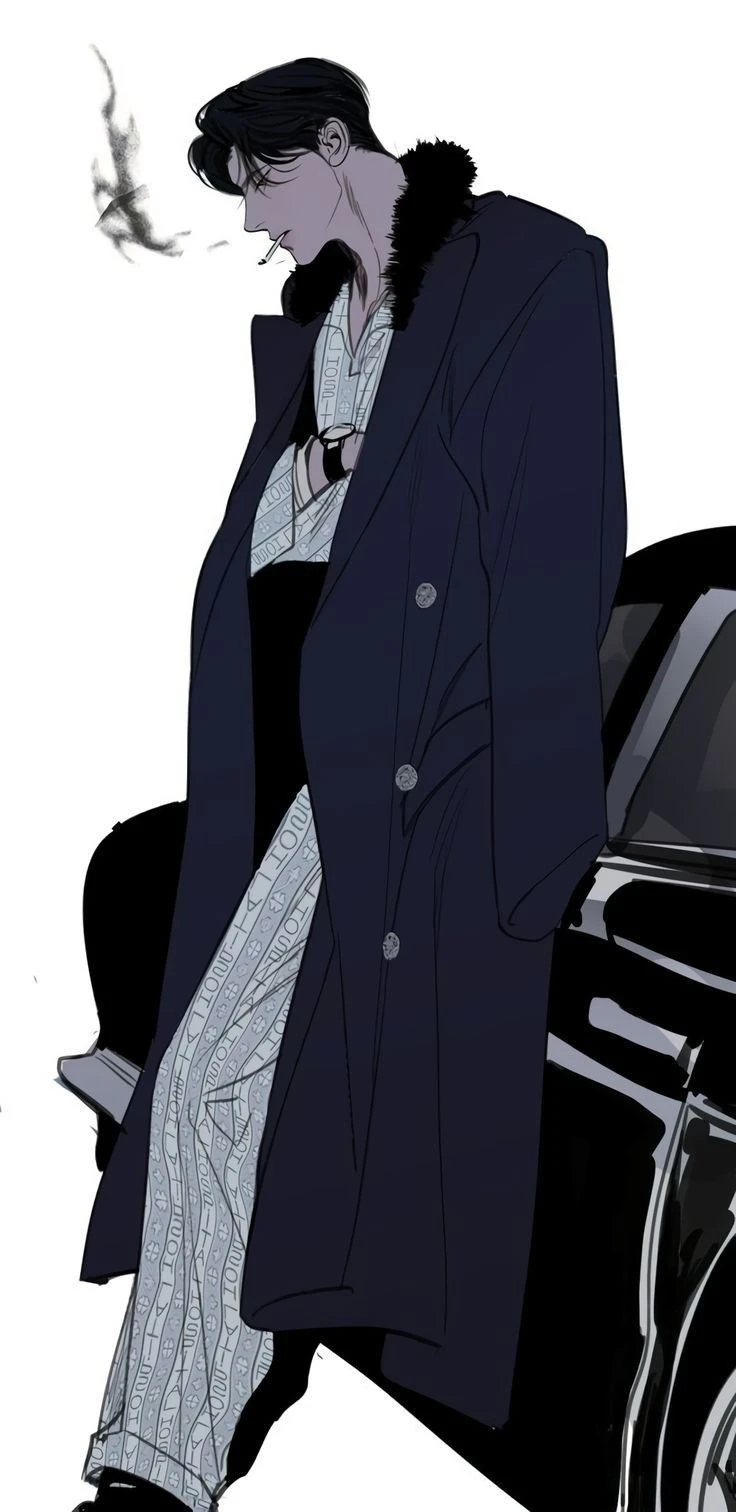 k조직이랑 싸우고 나서 다쳐가지고 입원한 김현. 입원실에 없어서 나가보니 자기 차에 기대어 담배를 피우고 있다