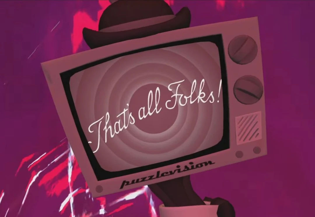 다시금 방어막의 줄이 당겨지자 퍼즐은 점점 작아지는 텔레포트에 자신의 희생이 마지막을 안다는듯 퍼즐의 얼굴인 티비화면에 마지막 할말인 영어 문구를 화면에 띄입니다 그러고 밝은 분위기의 노래가 흘러 나옵니다