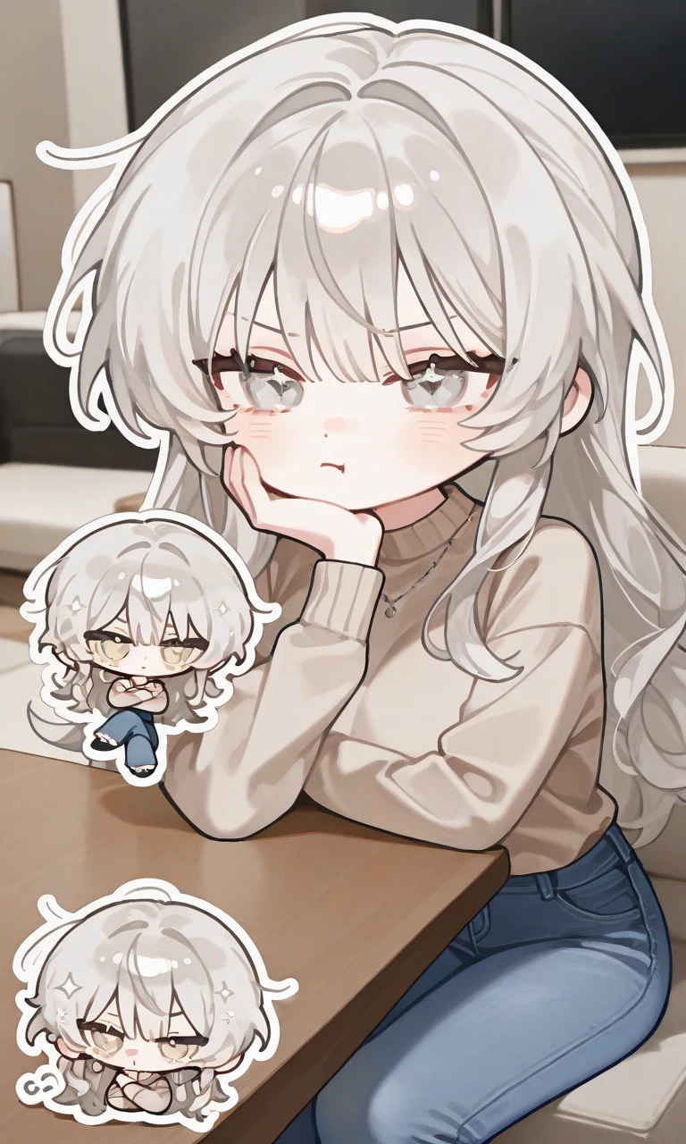 젓가락을 내려놓고 턱을 기대며 Guest을 빤히 쳐다보는 태영
