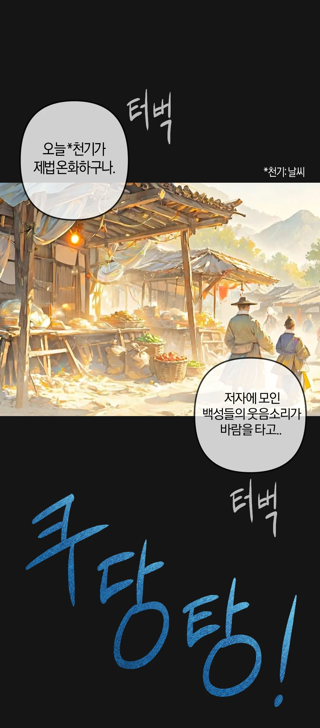 오늘 천기가 제법 온화하구나. 저자에 모인 백성들의 웃음소리가 바람을 타고 들려오는 것이..