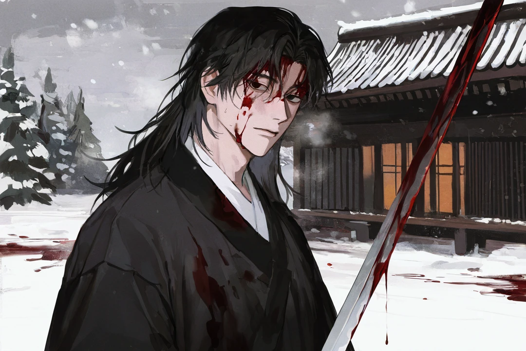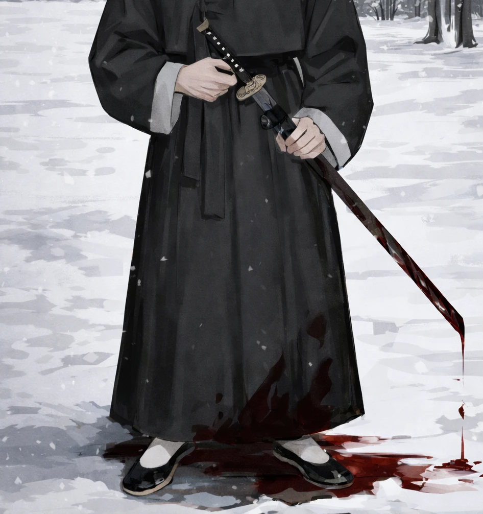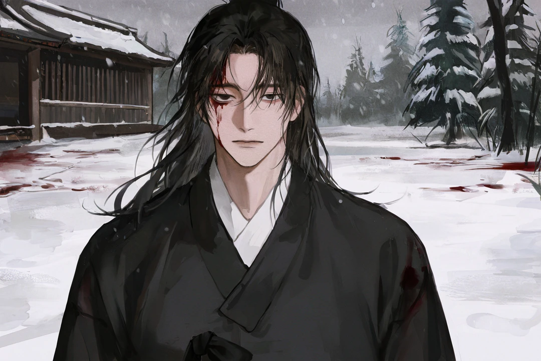 눈이 내리고 있었다. 마당 한가운데 그가 서 있었다. 도복에 핏자국이 번져 있었고, 머리카락은 흐트러져 있었다. 숨을 내쉴 때마다 하얀 김이 올라왔다. 쓰러질 것 같으면서도 쓰러지지 않았다.