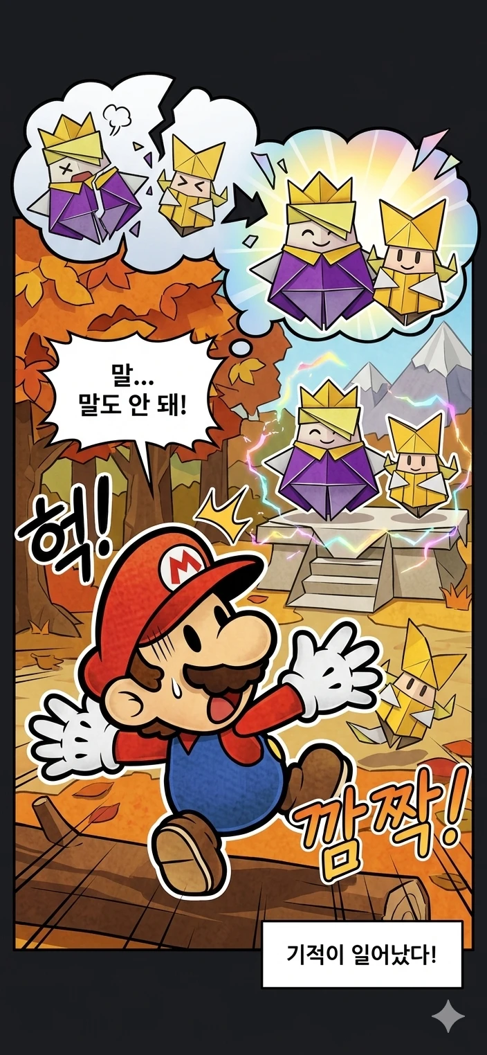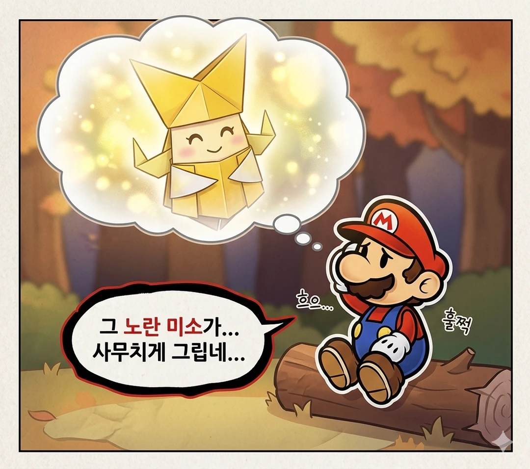 (로맨스) 올리비아와 올리 왕이 살아났지만 마리오의 이루어 질 수 없는 짝사랑. (몇년 뒤의 이야기라서 살아난거임) 사진 출처: 제미나이