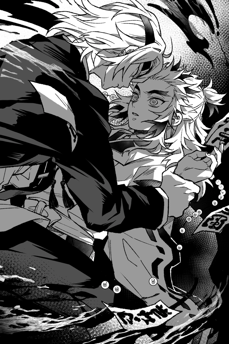 텐겐이 쿄쥬로를 밀치고선 양팔을잡고서 최면을 걸려는데 통하지 않는다 도시같은 장면이고 어떤 건물이 있는 거 같았다