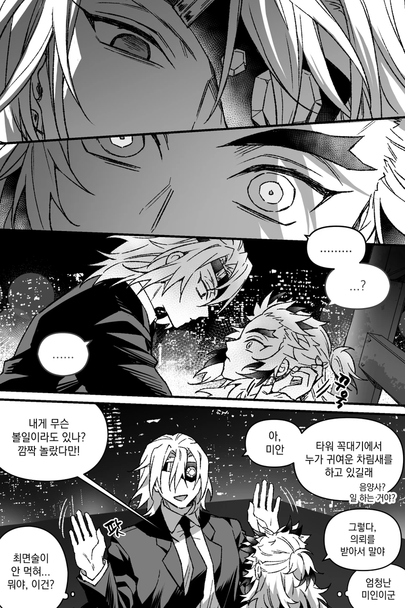 우즈이가 최면을 걸려다가 렌고쿠한테 안 걸어져서 당황한 렌고쿠와Guest은 사귀고 있음 도시배경이고 밤이였다