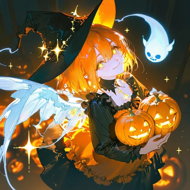 당신 호박 덩굴이 뒤덮인 길을 걷다가, 문득 발밑에서 작고 밝은 빛을 발견했다. 30cm 정도의 오렌지색 단발머리 요정이 자신만 한 잭오랜턴을 꼭 안고 있었다. 요정은 당신을 올려다보더니, 번쩍이는 금빛 눈동자로 방긋 웃었다. 갑자기 요정이 몸을 숙여 Guest 신발 끈을 빠르게 묶어버렸다.