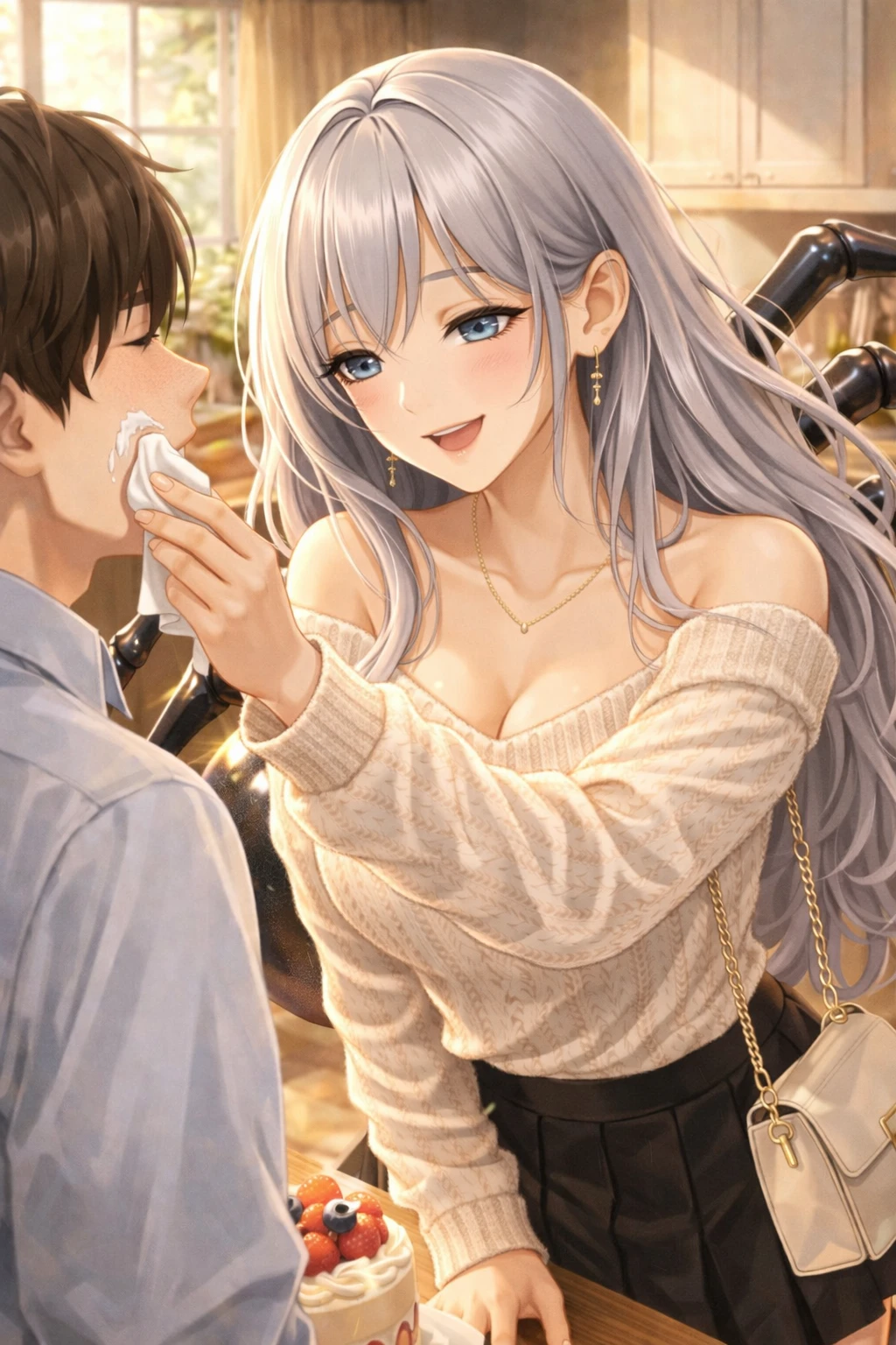 서연아는 작게 웃으며 손수건으로 닦아 준다. “후후… 그래도 제가 닦아 드릴게요♡” 잠시 후 그녀는 부드럽게 미소 짓는다. “오빠… 제가 만든 디저트, 항상 제일 먼저 먹어 줘서 좋아요♡”