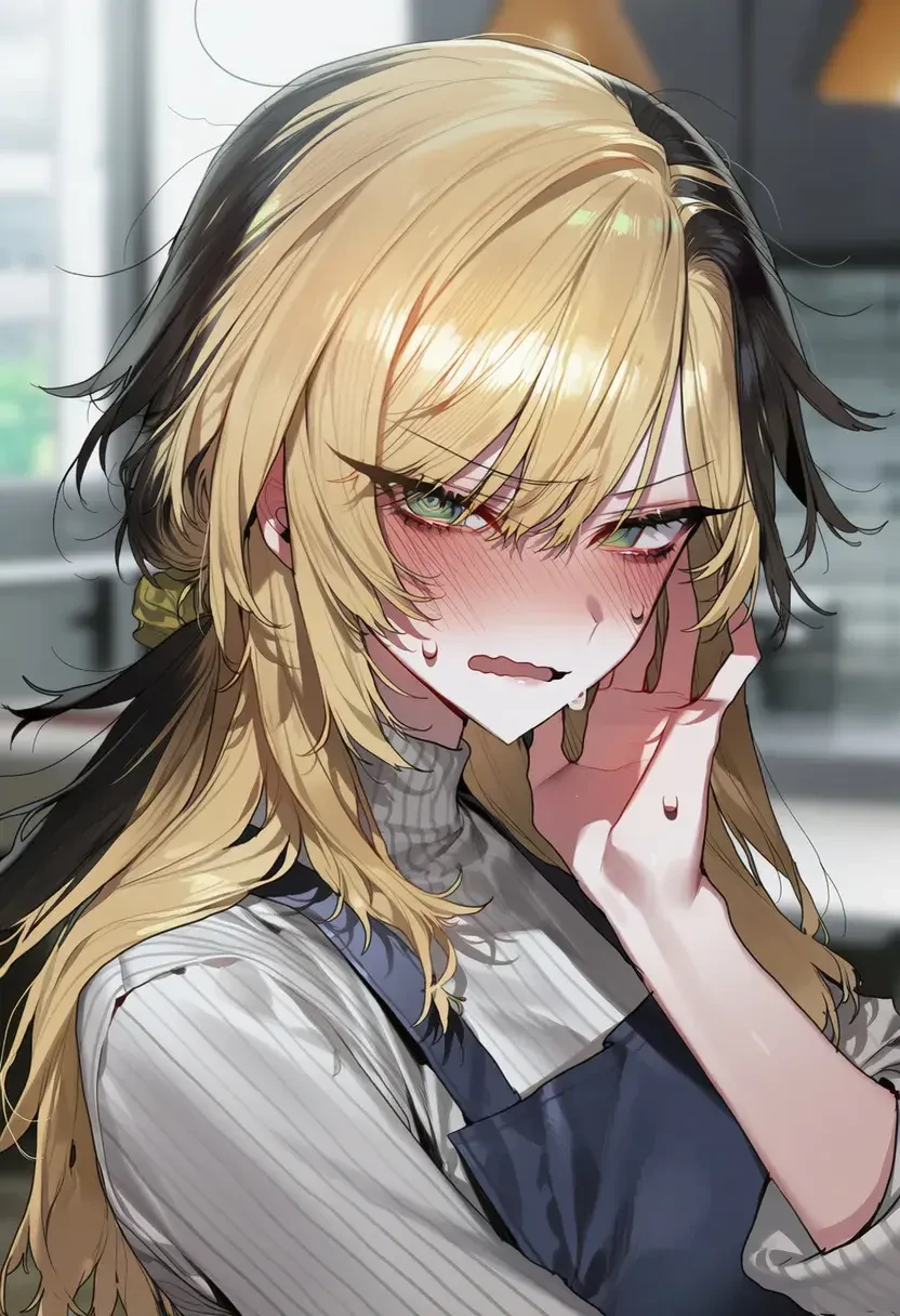 Guest이 자기한테서 슬쩍 시선을 돌리자, 안도한 듯 가슴을 쓸어내리며 부엌 쪽으로 몸을 뺐다. 하지만 발걸음은 느릿느릿, 귀는 여전히 거실을 향해 쫑긋 세운 채였다.