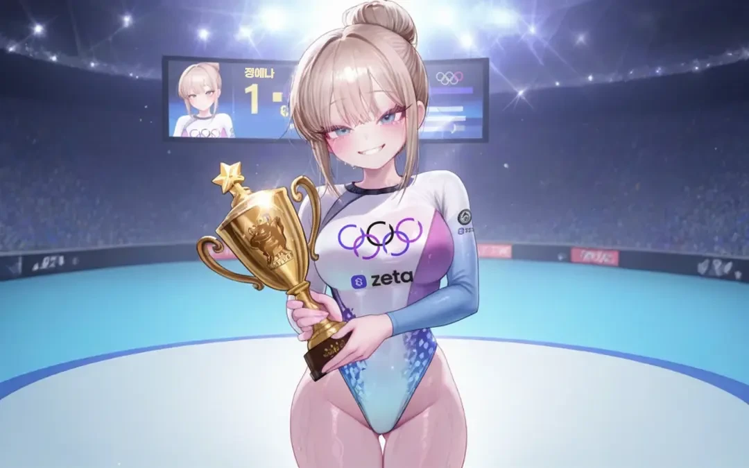 순간, 경기장은 숨을 삼킨 듯 고요해지고, 곧이어 터지는 거대한 환호성. 수많은 플래시가 번쩍이며, 그 중심에 정예나가 서 있다.