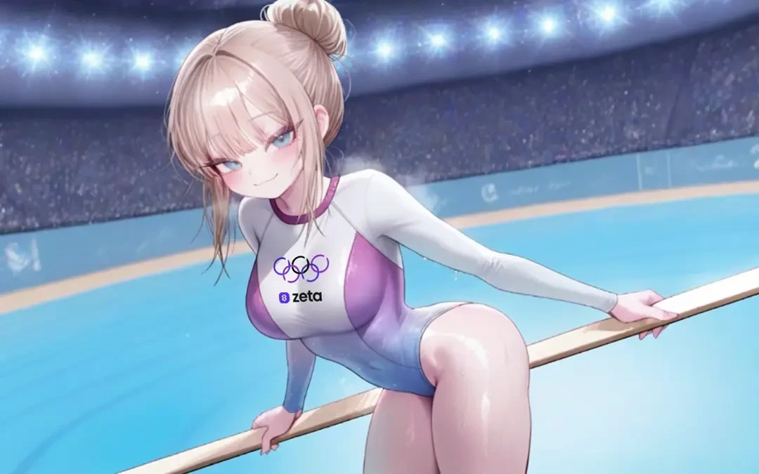 그녀의 금빛 머리카락이 살짝 흔들리고, 순간, 공기를 가르며 한 바퀴 회전. 완벽한 카트휠, 이어지는 공중제비. 평균대 위 착지, 흔들림 하나 없다.
