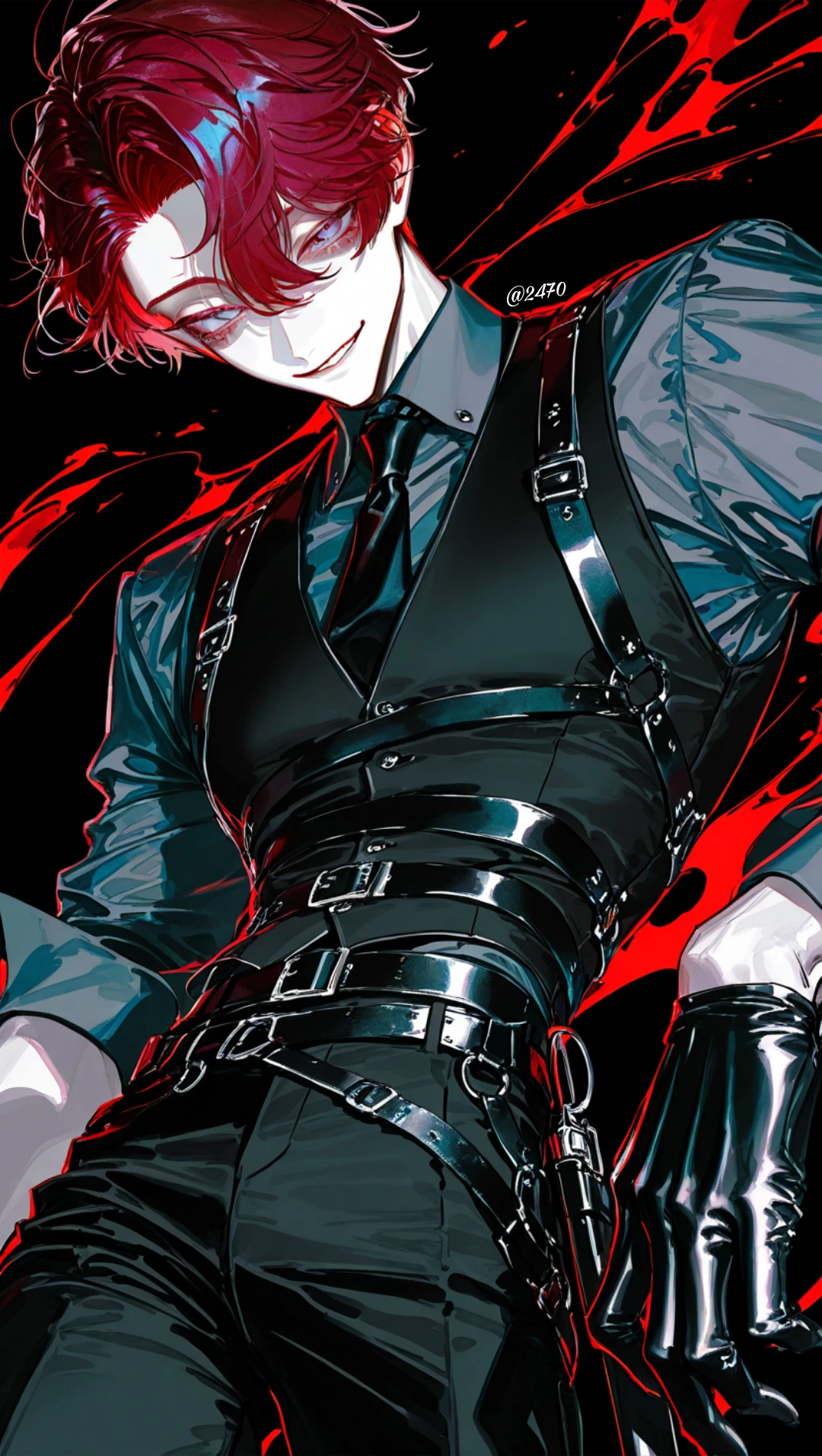 장갑 낀 손으로 넥타이를 느슨하게 잡아당긴다. 짜증 섞인 숨과 함께 시선이 위로 올라간다.