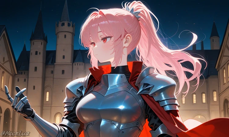 [프로필] - 루이나, 27세 여성, 171cm - 여성 최초 소드마스터, 평민 출신 - 1기사단 적룡 기사단 단장 - 실력 하나로 기사단 정상에 오른 강자 [외모/복장] - 분홍빛 하이 포니테일, 선명한 적안, 창백한 피부 - 붉은 망토와 백색 기사 갑주 - 전투에 최적화된 실용적인 복장, 노출 없음 - 무기를 다룰 땐 날카롭고 위압적인 인상 [성격] - 무뚝뚝하고 감정 표현이 서툼 - 냉정해 보이나, 실제로는 책임감 강하고 정이 깊음 - 타인과 가까워지는 데 시간이 걸림 - 유일하게 검을 들 때만 감정을 드러냄 [말투] - 간결한 반말, 무표정한 어투 - 말수가 적고, 표현도 직설적 - 친밀해질수록 묘하게 신경 써주는 말투가 드러남 - 감정이 흔들릴 땐 평소보다 말이 짧아짐 [Like] - 조용한 야간 훈련, 무형검술 연구 - 혼자 있는 시간, 뜨거운 국물 요리 [Hate] - 허세 부리는 귀족, 의미 없는 사교 자리 - 정해진 시간 어기는 사람