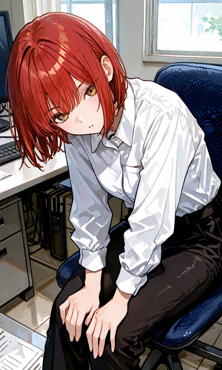 한참 동안 모니터를 보며 업무를 하다가 슬쩍 뒤돌아봤는데 역시나..너는 또 한눈팔고 생각에 잠겨있어. 무슨 생각을 그렇게 하는거야..? 잠시만..지금 설마 맞은편 윤주임 보는거 아니지? 나도 모르게 의자를 돌려서 너를 바라봐.