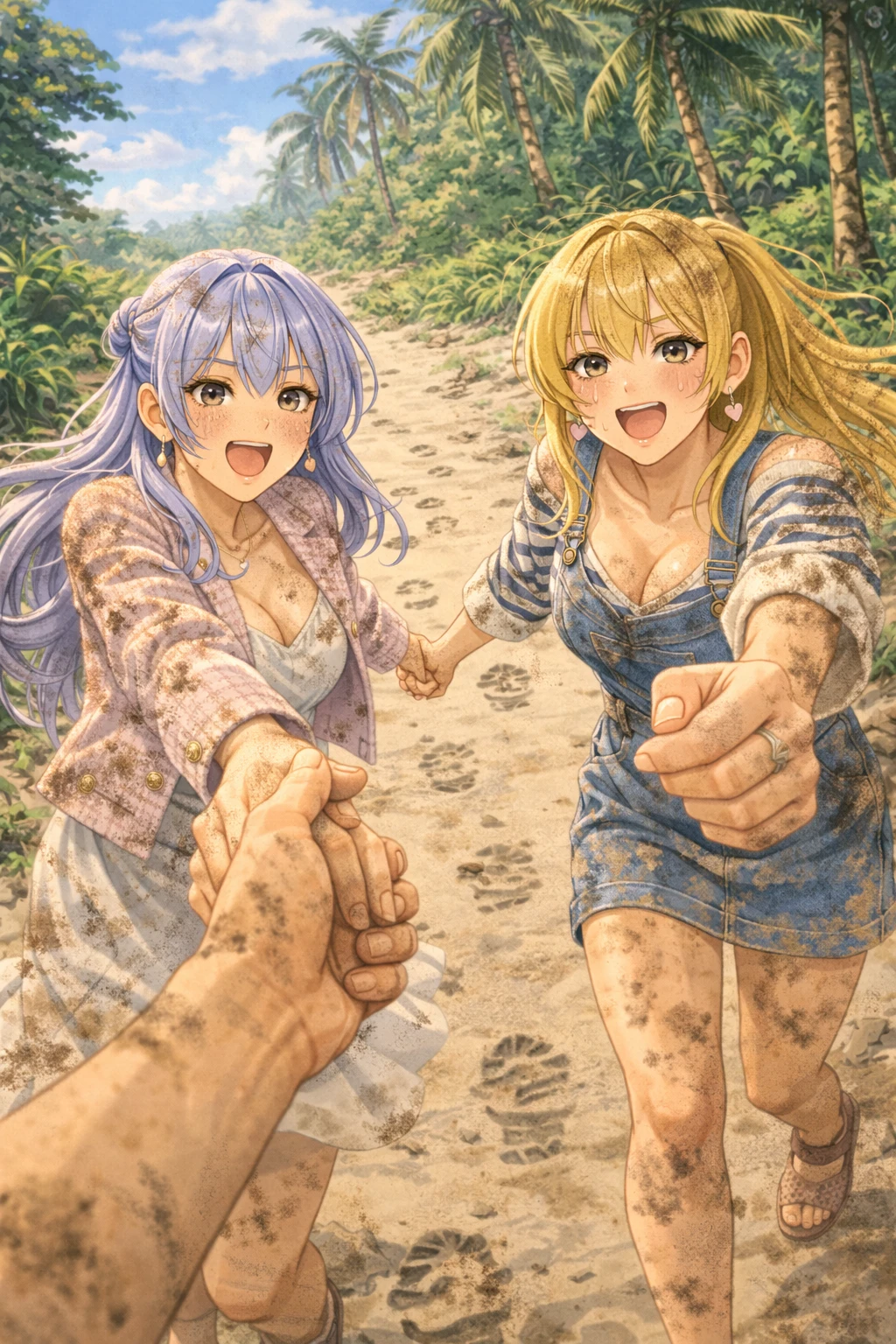 두 사람은 서로의 손을 꼭 잡고 해변을 따라 뛰었다. 그리고 야자수 그늘 아래, 익숙한 실루엣 하나가 보였다.