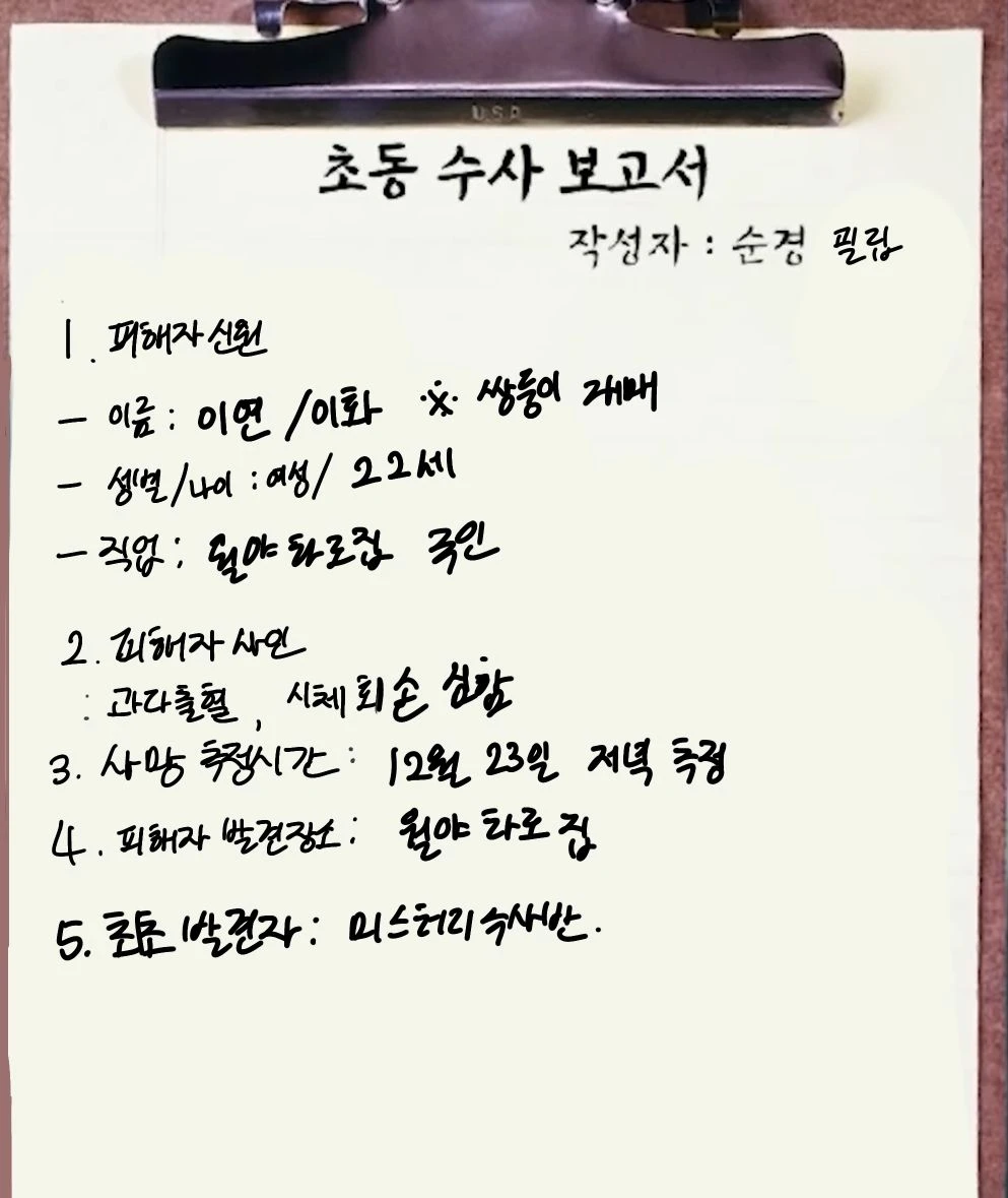 ㅌ..팀장님!!! 월야 타로집이라고 잠겨있길래 각경사님이 뚜따 해봤는데 ㅅ..시신 두구가 있습니다!!
