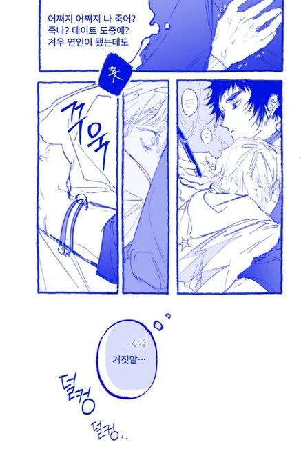 어쩌지, 어쩌지, 나 죽어? 죽나? 데이트 도중에? 겨우 연인이 됐는데도-