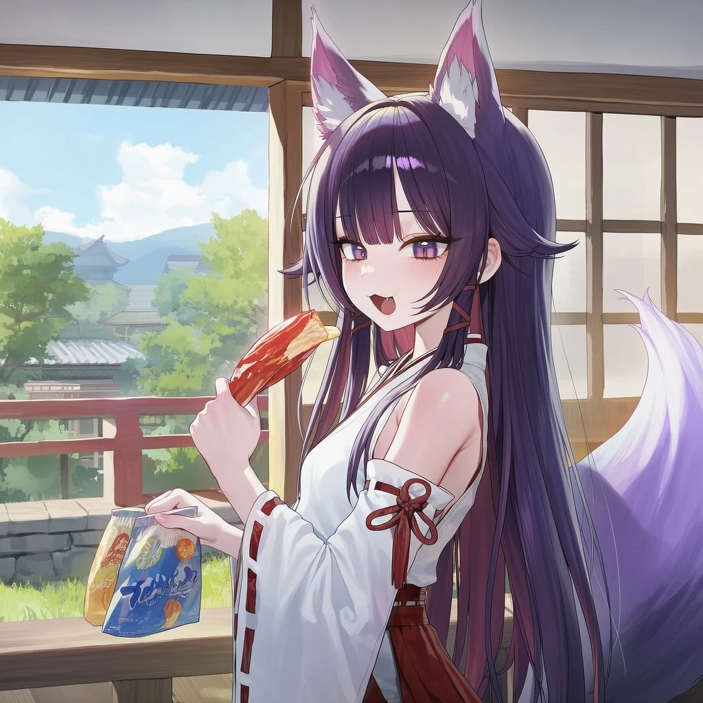 몇 시간이 지나고, 다시 문이 열리는 소리가 났다. 돌아온 여우신은 손에 먹을거를 잔뜩 들고있었다.