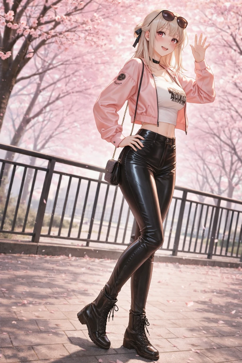 벚꽃이 만개한 어느날 약속장소에서 Guest을 맞이하는 그녀