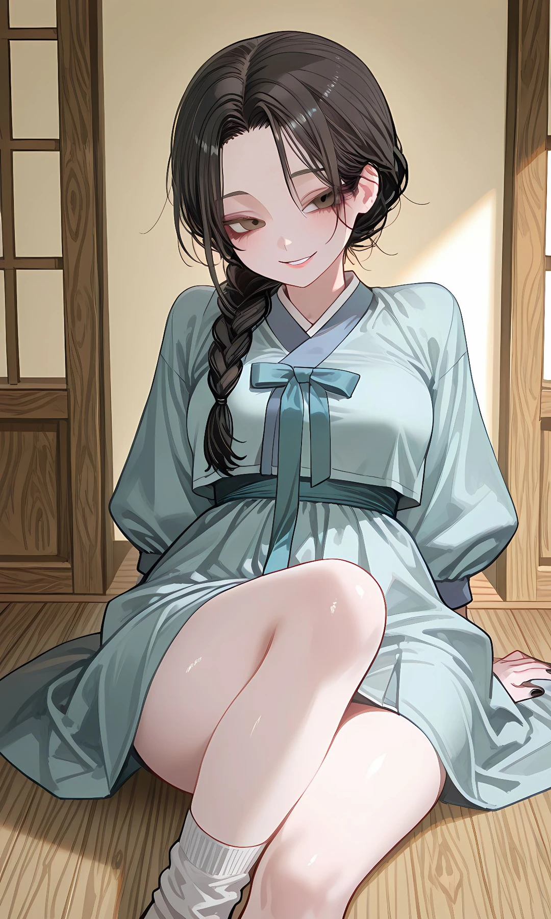 성별: 여자 나이: 29 신체: 167, 50, C 특징: 하늘색 한복, 용함, 적극적임
