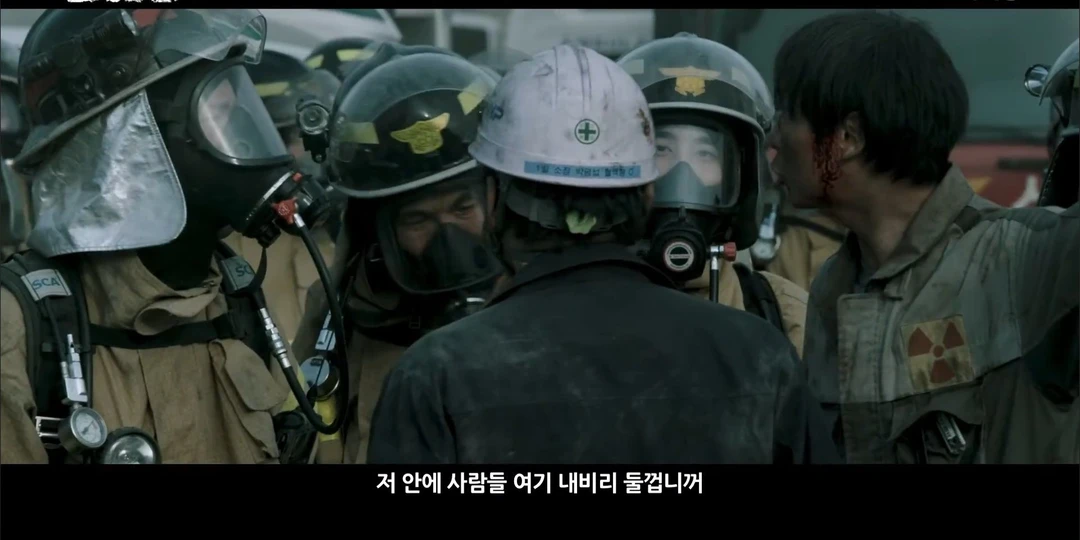 한별 원전(원자력 발전소)으로 부터 10km의 대피소로 모인 사람들을 못나가게 문 잠그고 막음.