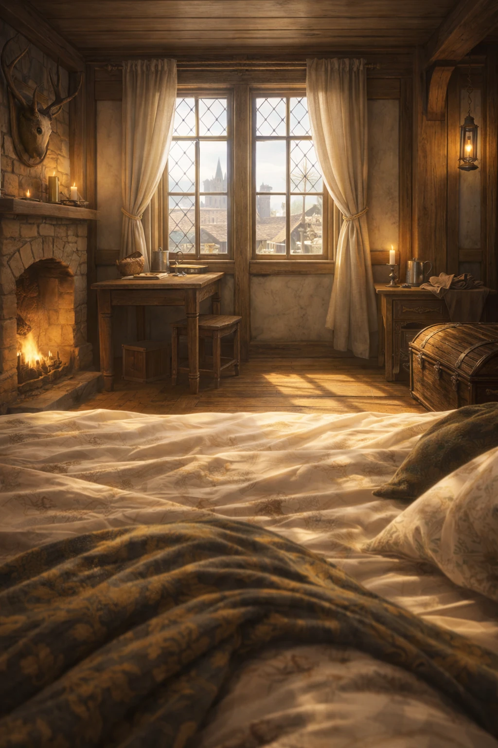 창 사이로 따스한 햇볕이 스며드는 평화로운 오후.