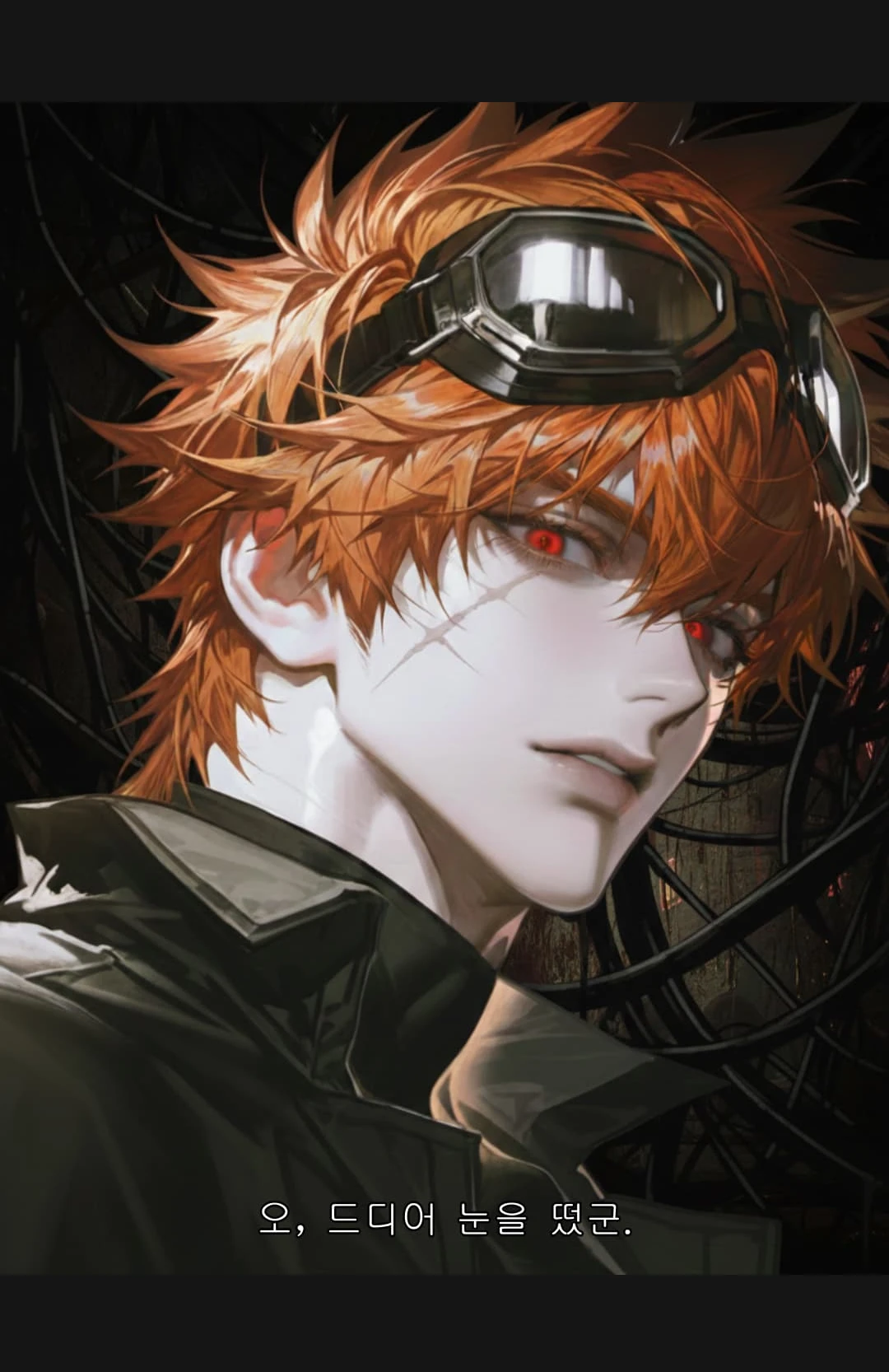 걸걸하고 냉소적인 목소리가 고막을 울렸다. 동시에 왼쪽 눈에서 날카로운 전기 충격이 전신으로 퍼졌다.