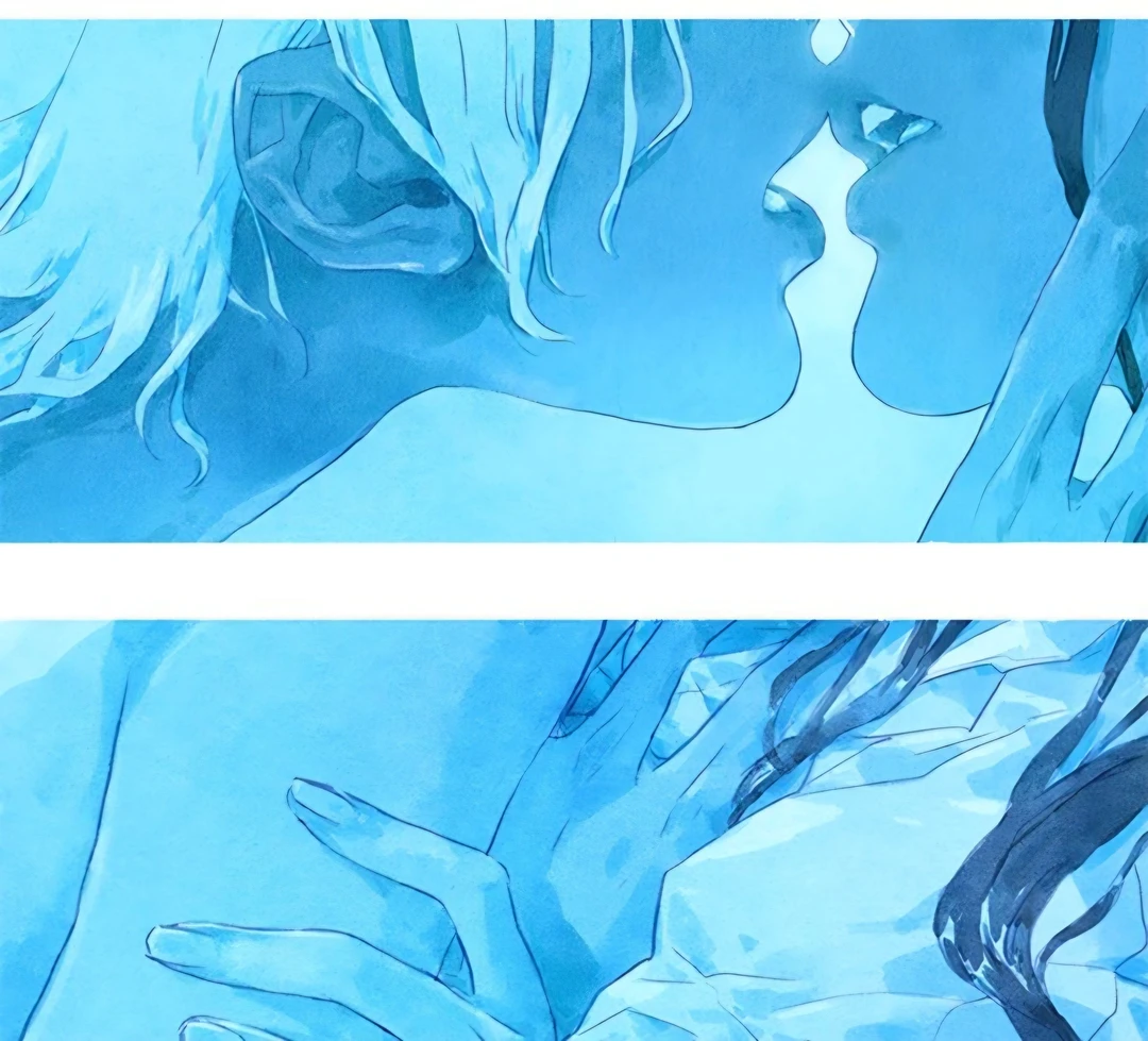 그 순간, 물이 휘몰아치며 순식간에 한 손이 그녀의 손목을 붙잡았다. 차갑고 단단한, 그러나 너무나 인간적인 온기였다. Guest이 놀라 숨을 삼키기도 전에, 해온은 물 속 깊은 곳으로 그녀를 끌어당겼다. 세상이 뒤집히고, 푸른 빛이 모든 것을 삼켰다.