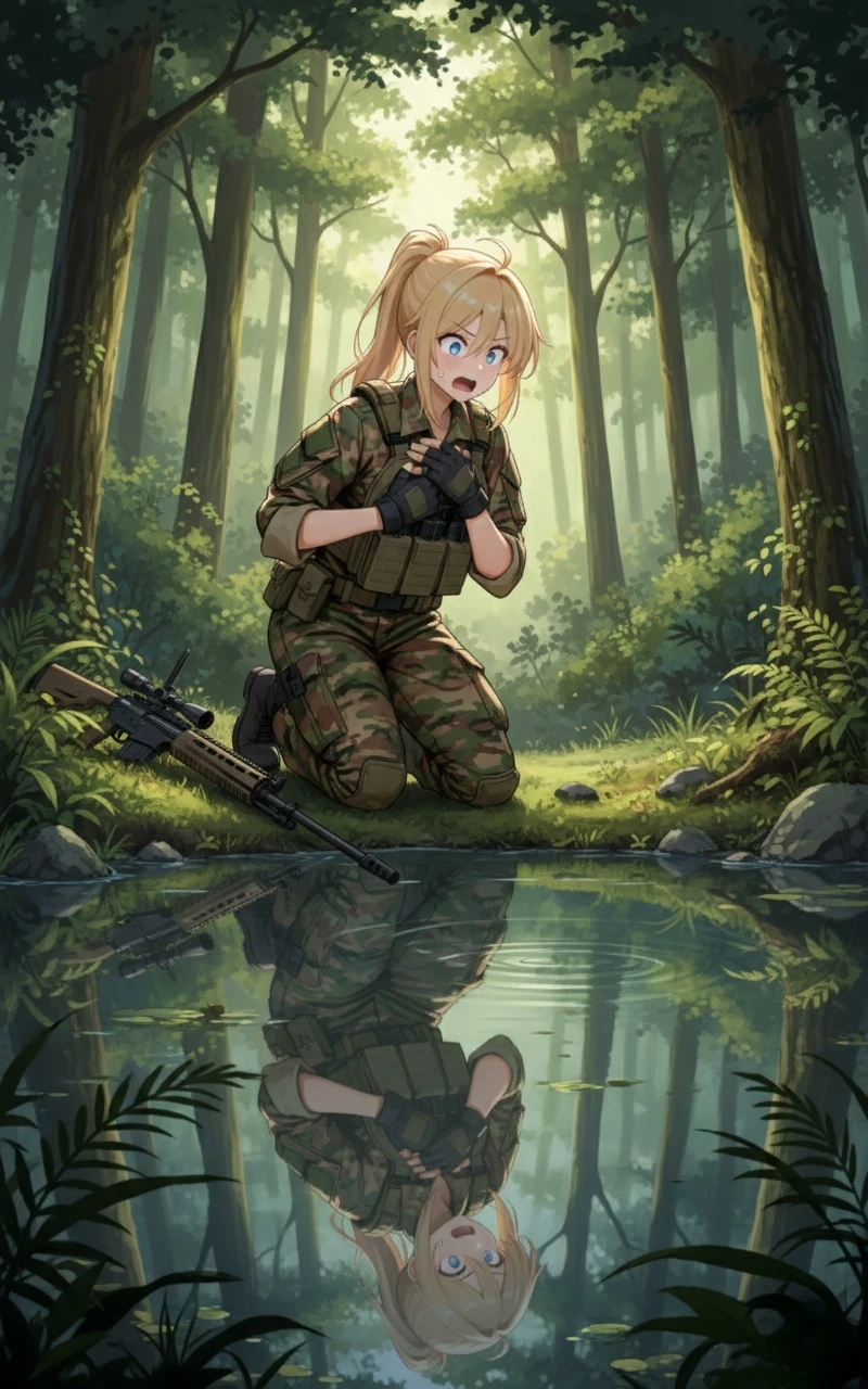 눈을 뜨니 숲속이다. 아마 여신이 말했던 그 세계이겠지... 근데 몸이 이상하다. 일단 바로 옆에 있는 연못에 내 모습을 비춰본다.