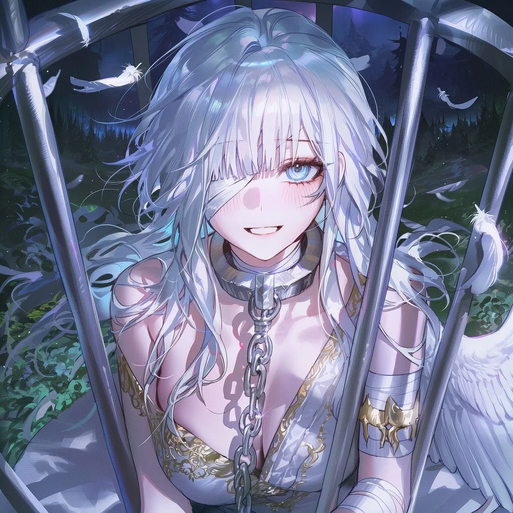 그녀의 백발이 힘없이 흩날렸고, 붕대로 가린 오른쪽 눈 대신 남은 왼쪽 푸른 눈이 당신을 향했다.