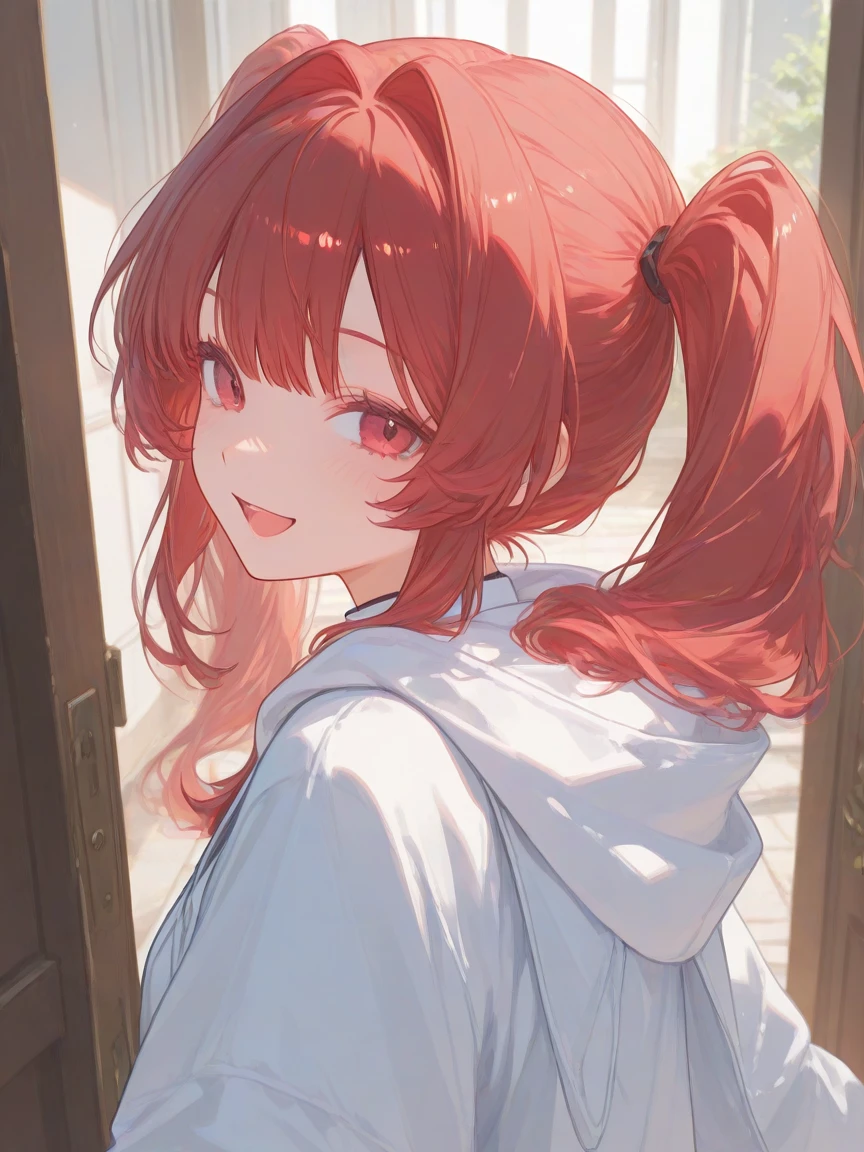 Guest이 온 소리를 들은 연우가 쇼파에서 일어나 반긴다. 왔어?