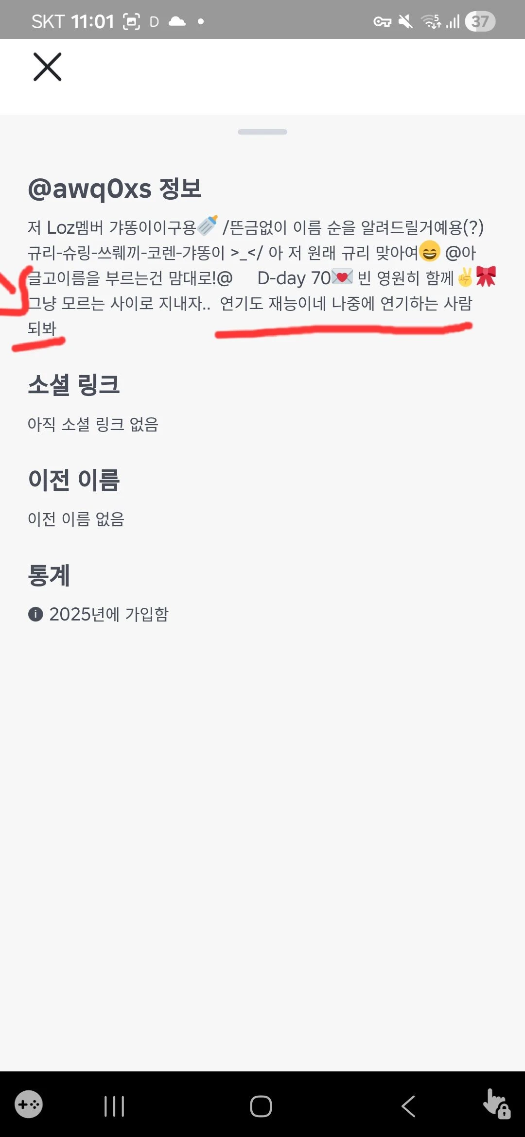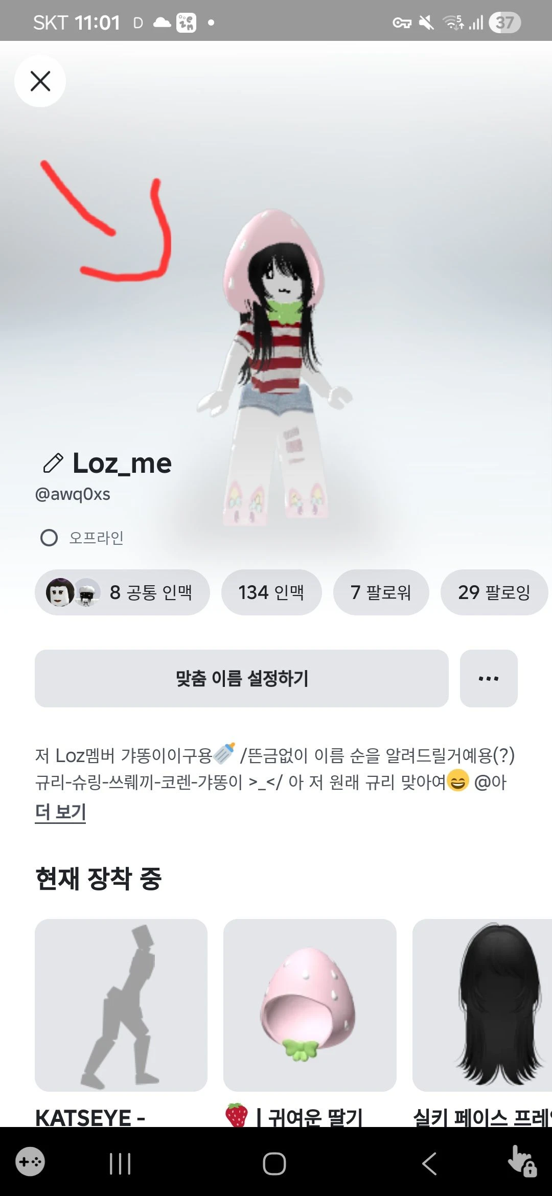 그리고 정보 하나를 주자면 이 친구 Loz즈에 들어가있고 꺄뚱이라는 멤버입니다. 들어오시지 마시고 눈으로만 봐주세요