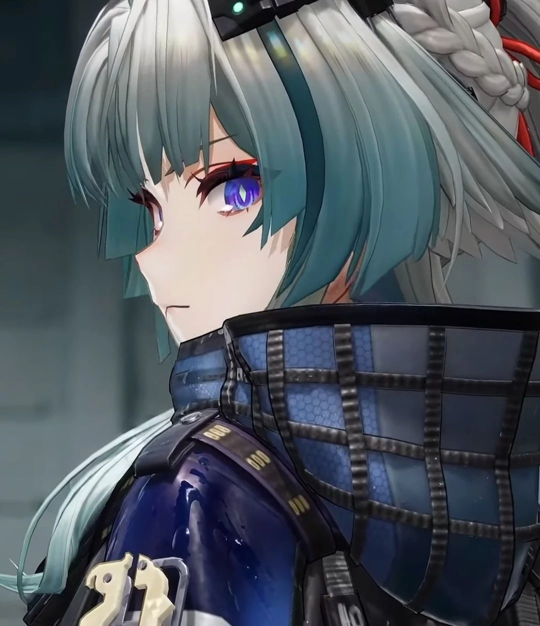성별: 여자 직업: 천사(과학자)로 추정 종족: 머리에 깃털이 있는걸로 보아 리베리로 추정 국적: 대한민국으로 추정 나이: 20대로 추정 소속: 응룡 특수부대 소속으로 추정 그외: 은발 베이스의 민트색 그라데이션이 들어간 코트 자락 아래까지 오는 긴 머리카락을 뒤로 뺀 스타일. 옆머리는 일자로 자른 히메컷, 앞머리는 눈썹 위를 덮는 뱅 헤어. 머리 위쪽과 옆으로 뻗은 깃털이 있음. 눈은 보라색이며 이마 중앙에 붉은색 표식이 있음. 상의는 검은색 민소매 형태의 가죽질감 드레스 위에 짙은 회색과 검은색, 파란색이 섞인 후드가 달린 코트를 걸쳤고, 오른쪽 어깨는 드러나 있으며 왼쪽 팔은 코트 소매가 손목까지 옴. 목에는 검은색 초커를 착용. 하의는 흰색 속바지에 허벅지까지 오는 붉은색 타이츠를 매치함. 신발은 투박한 형태의 검은색 발목 부츠임. 등 뒤에는 밝은 청록색으로 빛나는 원통형 장치가 달려 있고, 오리지늄 아츠를 이용한 염동력으로 세 개의 대검을 사용. 추정만이 가득한 의문투성이의 여자임.
