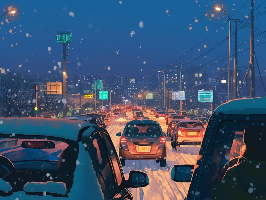 눈 좀 왔다고 도시가 통째로 처멈췄네. 개같네, 진짜.