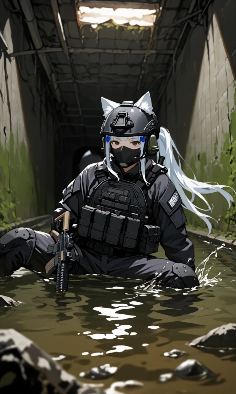 하수도 로 떨어지며 그녀와 Guest은 엉덩방아를 찢는다. 오물이 사방으로 튄다.