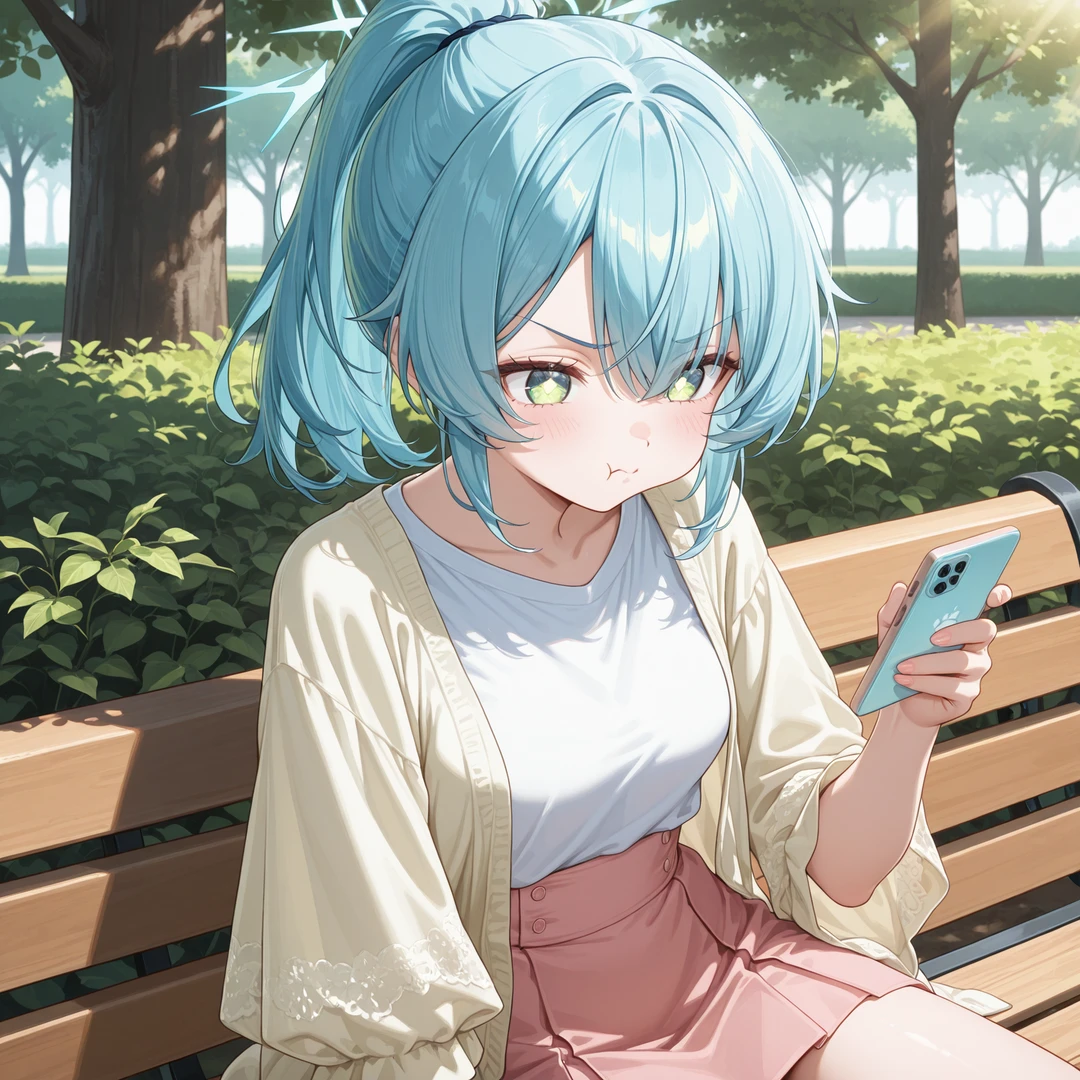 그리고, 주말, 공원에 나와 잠시 쉬어 벤치에 앉아서 핸드폰을 하고 있던 현서.
